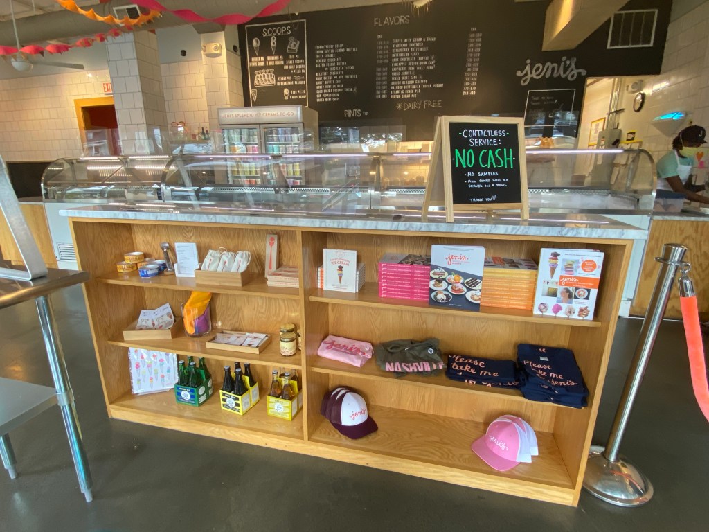 Jeni’s also sells cookbooks, T-shirts, tester spoons, an Ice Cream Scoop, pins, etc.