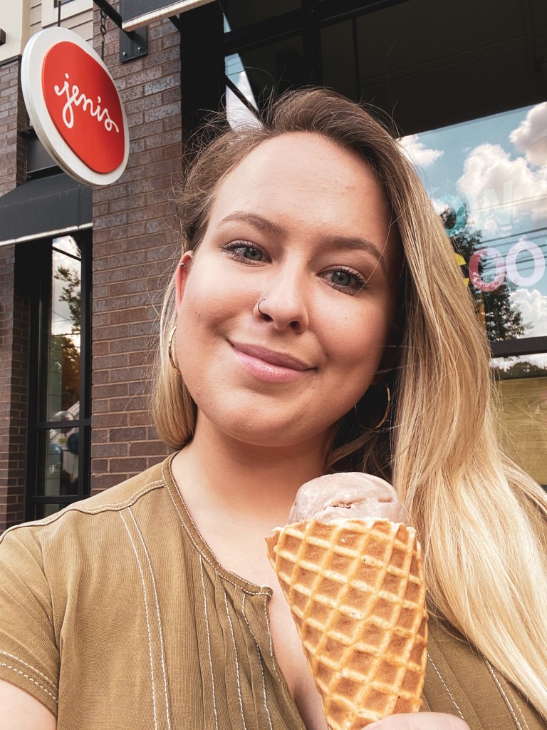 Another perk of getting Jeni’s is their freshly made Buttercrisp Waffle Cones. I always get a Waffle Cone, but there are other options for ordering including in a sugar cone, in a bowl, or a whole pint.